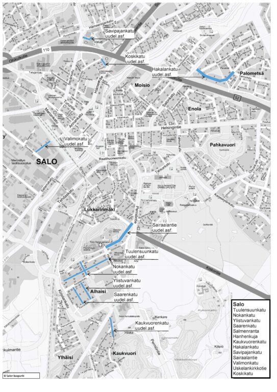 Katujen asfaltoinnit alkavat Salossa maanantaina 4.5.