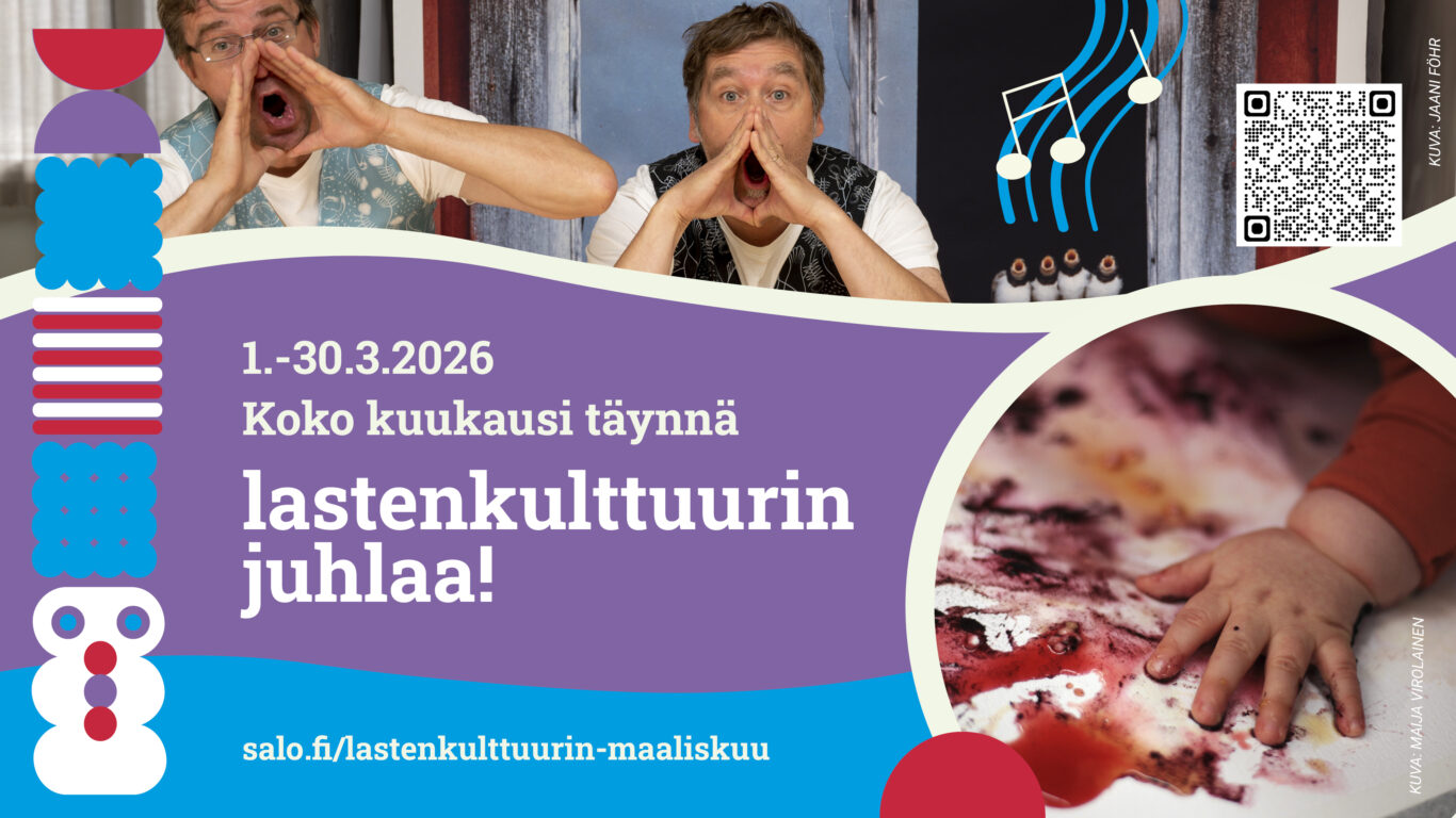 Lastenkulttuurin maaliskuu järjestetään Salossa tänä vuonna seitsemättä kertaa. Teemakuukauden tarkoituksena on nostaa esiin Salon monipuolista lastenkulttuuritarjontaa ja -toimijoita. Lastenkulttuurin maaliskuuta koordinoi Salon kaupungin kulttuuripalvelut ja teemakuukauden ohjelmaan ovat tervetulleita kaikki kulttuuritoimintaa lapsille järjestävät tahot. Ohjelmailmoittautuminen lastenkulttuurin nettisivuilla on nyt avattu. Ilmoittautumisia toivotaan niin lastenkulttuuritoimijoilta kuin muiltakin lasten ja perheiden kanssa toimivilta tahoilta, jotka haluavat teemakuukauteen mukaan.